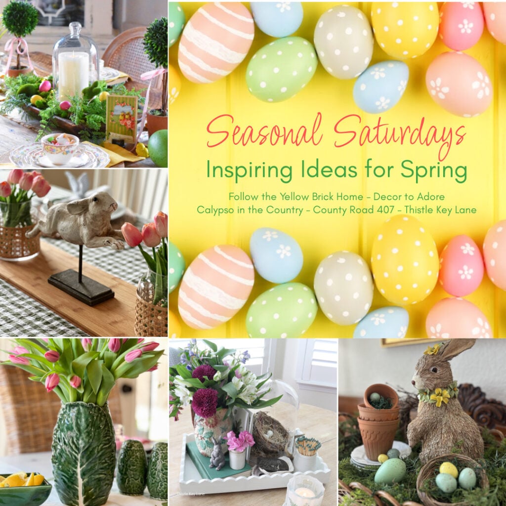 I h0pe you enjoyed seeing my simple Farmhouse Easter Tablescape and a few views around the dining room! Now it’s time to head over to Decor to Adore to see Laura’s sweet touches of spring! Don’t forget to click on each link below for more spring seasonal Saturday inspiration.