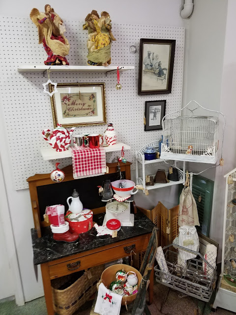 Today I am sharing some of the ways my sisters and I (collectively, we are Panoply) have styled our retail booth spaces in holiday style. We are located in the South Charleston Antique Mall in South Charleston, WV, and have been there since 2008. Since I’ve only been blogging since 2013, I’ll be sharing some of those holiday vignettes staged over the course of the past five years. My Panoply sisters and I cordially invite you to come share in the seasonal displays anytime, as our mall is open seven days a week!