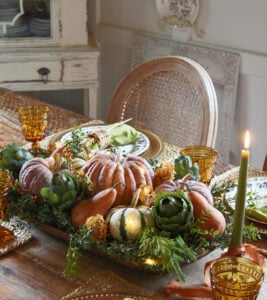 Thankgiving PC doughbowl close up October 27, 2025 by Amber Lyon Ferguson / Leave a comment Thanksgiving Tablescape with French Pumpkins, Bosc pears and artichokes Share: