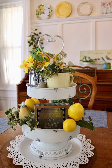 How To Decorate a Metal Teired Tray & a Dining Room With a Lemon Theme~ Amy’s Creative Pursuits